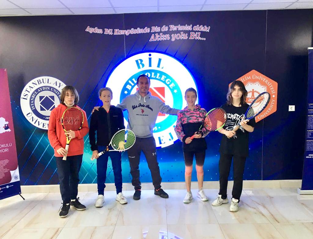 Aydın Bil Koleji’nin hem kız hem erkek tenis takımları, İzmir’deki Bölge Şampiyonasında galip gelerek Türkiye’deki ilk 8 takımın arasına girip Aydın’dan bir tenis takımının ilk kez Türkiye Finalleri’ne taşınmasını sağladı.