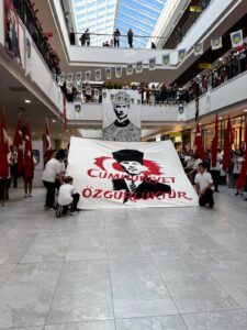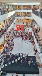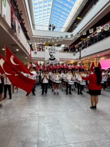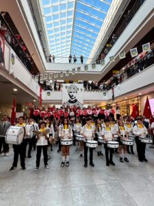 Kutlamaların ikinci durağı ise OPS Mall Alışveriş Merkezi oldu. Burada gerçekleştirilen etkinlik, okul bandosunun marşlarla alışveriş merkezini coşkuyla inletmesiyle başladı. Ardından sahne alan öğrenci grupları, hazırladıkları enerjik ve duygu yüklü performanslarla izleyenlere unutulmaz anlar yaşattı. Ziyaretçilerin yoğun ilgi gösterdiği etkinlikte, coşku ve gurur dolu anlar yaşandı.