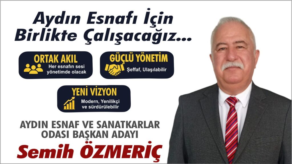 AYESOB adayı Semih Özmeriç, Aydın esnafı için kalite, eğitim ve marka vurgusu yaptı. Vergi yüküne dikkat çekti, çözüm mesajı verdi.