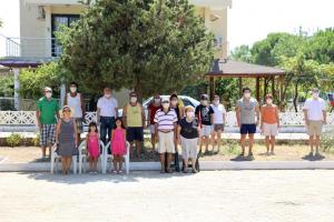 Konuşmanın ardından büstün açılışı yapılırken, Başkan Atabay site sakinleriyle büstün önünde hatıra fotoğrafı çektirdi