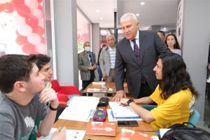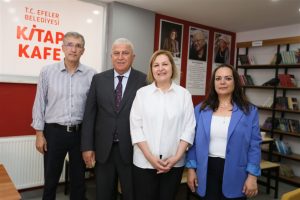 Efeler’i marka kent yapma hedefiyle her ay açılıştan açılışa koşan Başkan Atay’ın gözde projesi olan Kitap Kafelerin 6’ncısı, Cumhuriyet Mahallesi Tevfik Fikret Caddesi’nde açıldı. Açılış törenine; Efeler Belediye Başkanı Mehmet Fatih Atay, eşi Güneş Atay, CHP 26. Dönem Bursa Milletvekili Araştırmacı-Yazar Dr. Ceyhun İrgil, Aydınlı usta oyun yazarı Dr. Hidayet Sayın, DEVA Partisi Aydın İl Başkanı Meltem Gürler, Gelecek Partisi Aydın İl Başkanı Suzan Yücel Milli, Efeler Belediyesi’nin meclis üyeleri, birim müdürleri, sivil toplum kuruluşlarının ve siyasi partilerin temsilcileri ile muhtarlar ve çok sayıda vatandaş katıldı.