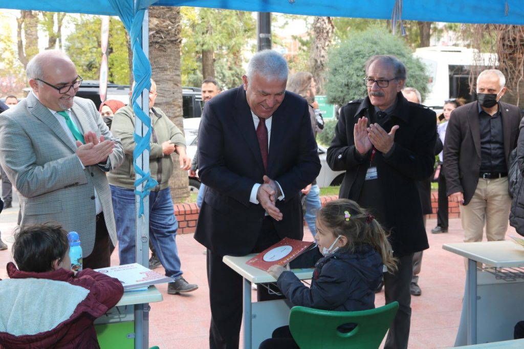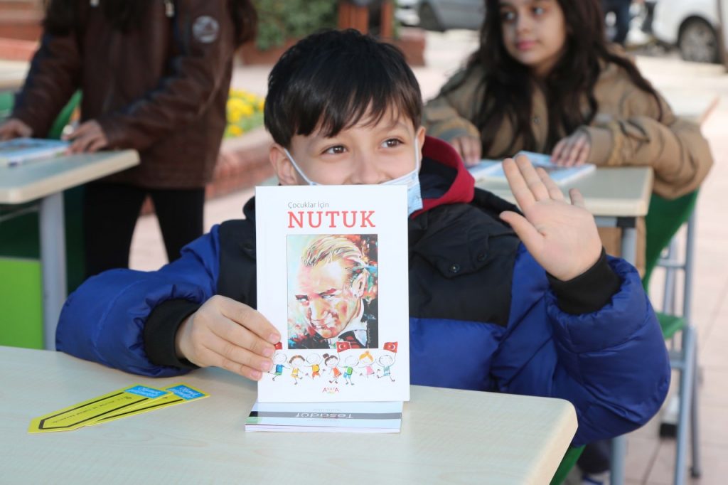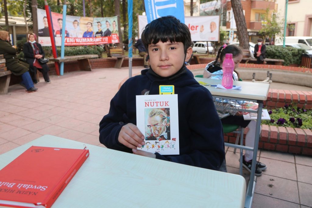 Efeler Belediye Başkanı Mehmet Fatih Atay, ‘Kütüphane Haftası’ dolayısıyla Efelerli çocuklara Ulu Önder Gazi Mustafa Kemal Atatürk’ün Nutuk kitabının çocuklara yönelik bir baskısını hediye etti.