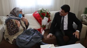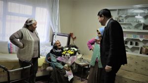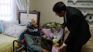 İlk olarak Yıldıztepe Mahallesi’nde yaşayan 1920 doğumlu 102 yaşındaki Nazlı Ballı’yı evinde ziyaret ederek sürpriz yapan Başkan Özcan; “Sizlere sağlıklı sıhhatli uzun ömürler diliyorum. Bizim en büyük hazinemiz sizlersiniz. Bu anlamlı günde sizlerle birlikte olmaktan gurur ve mutluluk duyuyorum” diyerek çiçek takdim etti.