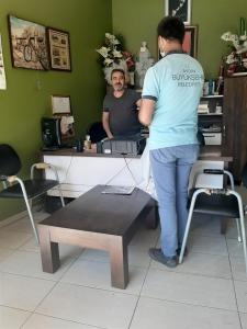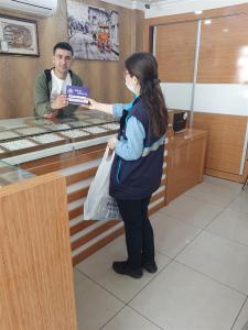 Büyükşehir Belediyesi, Koçarlı’da yeniden açılan dükkânların dezenfeksiyonunu hafta sonu boyunca yaptı. 1 Haziran Pazartesi günü itibarıyla kepenklerini açan lokanta, aperatif salonu, kahvehane gibi mekânların sahiplerini de unutmayan Büyükşehir Belediyesi maske, eldiven ve dezenfektan dağıtımı yaptı.