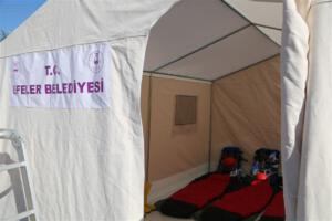 “Belediye Başkanımız Sayın Mehmet Fatih Atay’ın talimatıyla alınan, 50 adet 9 metrekarelik, 50 adet 12 metrekarelik olmak üzere toplam 100 adet çadır barınma amaçlı olarak, 5 adet 70 metrekarelik çadır ise yiyecek-içecek ve malzeme depolanması, dağıtımı gibi amaçlarla kullanılmak üzere satın alınmıştır. Çadırlarımızın tavanları, yan duvarları, taban ve efektleri su geçirmez ve aleve dayanıklıdır. Çadırlarımızın giriş kapısının yan duvarlarında aleve dayanıklı kumaş takviyeli bir adet baca deliği bulunmaktadır. Yani afetzede vatandaşlarımız çadırlarında gönül rahatlığıyla soba da kullanabileceklerdir.” HABER MERKEZİ