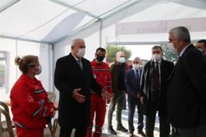 Konuşmalarının ardından Efeler Belediye Başkanı Mehmet Fatih Atay, davetlilerle birlikte çadırları inceledi.