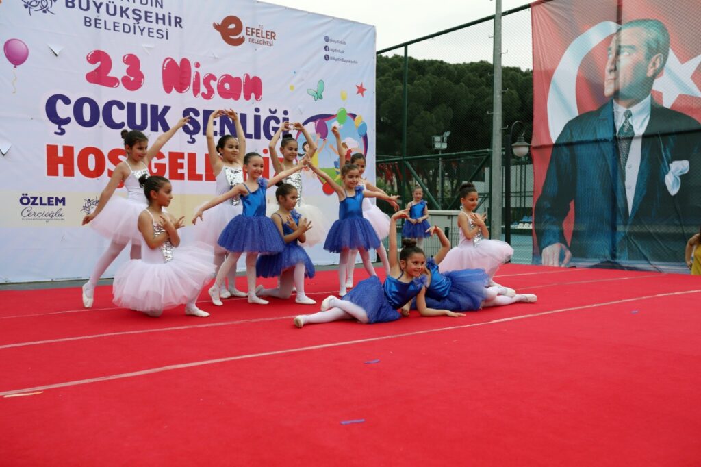 Efeler Belediyesi’nin Aydın Büyükşehir Belediyesi ile Aydın Tekstil Park’ta düzenlediği 23 Nisan etkinliklerinde Efeler Belediyesi’nin kreşlerindeki öğrencilerin hazırladığı gösteri renkli görüntülere sahne oldu. Öğrencilerin ve velilerin oldukça heyecanlı olduğu gösteride Efeler’in minikleri, şarkılar söyleyip şiirler okudu, halk oyunları ve dans gösterileri sergiledi. Çocukların söylediği şarkı ve marşlara öğretmenler, anne-babalar ve izleyiciler de eşlik etti.