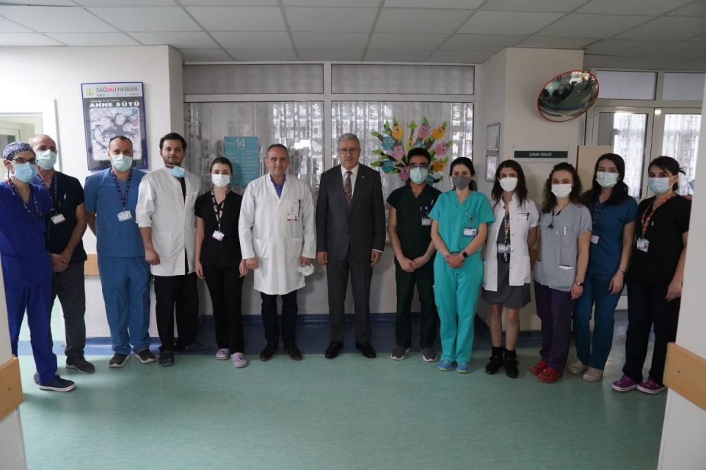 EÜ Rektörü Prof. Dr. Necdet Budak, başarılı bir ameliyata imza atan Doç. Dr. Dökümcü ve ekibini ziyaret etti. Ekibi tebrik eden Rektör Budak, “Ege Üniversitesi Tıp Fakültesi Hastanemiz sadece Türkiye’de A Plus hastane değil, uluslararası arenada da artık tam anlamıyla bir marka haline geldi. Burada da Meryem kızımız, Cezayir’den hastanemize gelmiş durumda. Fransa çok yakın olmasına rağmen Çocuk Cerrahisindeki Zafer Dökümcü hocamız ve ekibi için Cezayir’den Ege Üniversitesi Tıp Fakültesi Hastanemize geldiler. Yemek borusuyla ilgili operasyon yapıldı ve şu anda Meryem sağlığına kavuşmuş durumda. Bu aslında hastanemizin, cerrahlarımızın, hocalarımızın sağlık turizmi anlamında da uluslararası arenada tam anlamıyla bir marka olduğunu gösteriyor. Hocamızı ve ekibini kutluyorum. Kızımıza da Allah’tan şifa diliyorum. Yalnızca bölgemiz ve ülkemiz için değil uluslararası arenada da bu sağlık hizmetlerini vermeye devam edeceğiz” dedi.