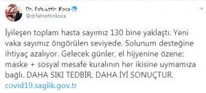 Sağlık Bakanı Fahrettin Koca, Türkiye’deki yeni vaka tablosunu açıkladı.
