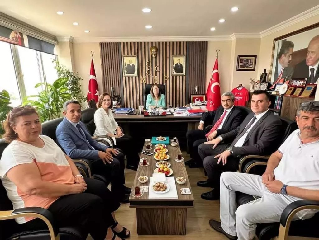 MHP Genel Başkan Yardımcısı Prof. Dr. Filiz KILIÇ, MYK Üyeleri Deniz DEPBOYLU ve Burak PEHLİVAN MHP Aydın İl Başkanlığını ziyaret etti. MHP Aydın İl Teşkilatlarının çalışmaları hakkında bilgi alan MHP Genel Başkan Yardımcısı Sayın Prof. Dr. Filiz KILIÇ; “MHP siyasetin değil davanın adıdır” dedi.