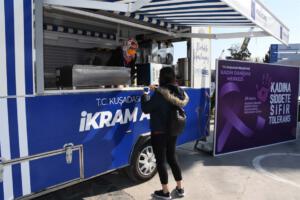Kuşadası Belediyesi, 25 Kasım Kadına Yönelik Şiddete Karşı Uluslararası Mücadele ve Dayanışma Günü nedeniyle bir stant açarak vatandaşlara İstanbul Sözleşmesi ve bilgilendirici broşürler dağıttı.
