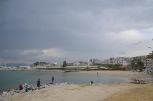 Kuşadası’nda yazın tatilcilerin yoğun olarak uğrayıp adım atacak yer bırakmadığı plajlar ile turistik işletmeler normalleşme sürecinin ilk gününde havanın yağışlı olması nedeniyle boş kaldı.