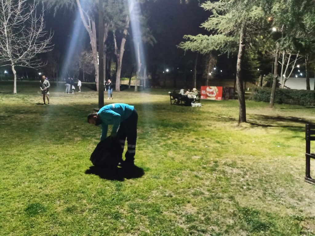İşin en komiği de sanki bizim sohbeti duydular arkadaşımın gözüne sokar gibi bak bak biz gece gündüz çalışıyoruz, her yeri tertemiz yapıyoruz der gibiydi. Bu ara da saat gecenin 12’si yani bu saatte bile adamlar canla başla işini yapıyor. Orda dikkatimi çeken şey adam gayretle hızlı hızlı çimlerin arasından tek tek çekirdek kabuğu, sigara izmariti topluyor. Dedim ki yok artık. Bu kadar değil yani. Ama gördüklerim gerçekti. Gerçekten takdir ettim helal olsun dedim.