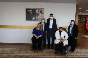 Türkiye Sakatlar Derneği Genel Başkanı Şükrü Boyraz, Yönetici Asistanı- Okçuluk Dünya ve Avrupa Şampiyonu Burcu Dağ, Aydın Şube Başkanı Zeliha Gündoğdu ve dernek üyesi Emine Karakış Çağlayan, Nazilli Belediye Başkanı Kürşat Engin Özcan’ı makamında ziyaret etti.